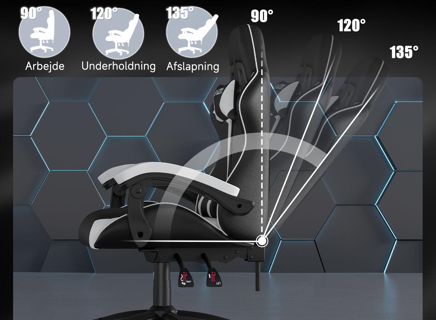 Juster ryglænet efter din kropsvægt, læn dig nemt tilbage i sædet, og læn dig så langt tilbage som muligt med op til 135 graders justerbar ryglænsvinkel for den mest behagelige afslappende stilling.