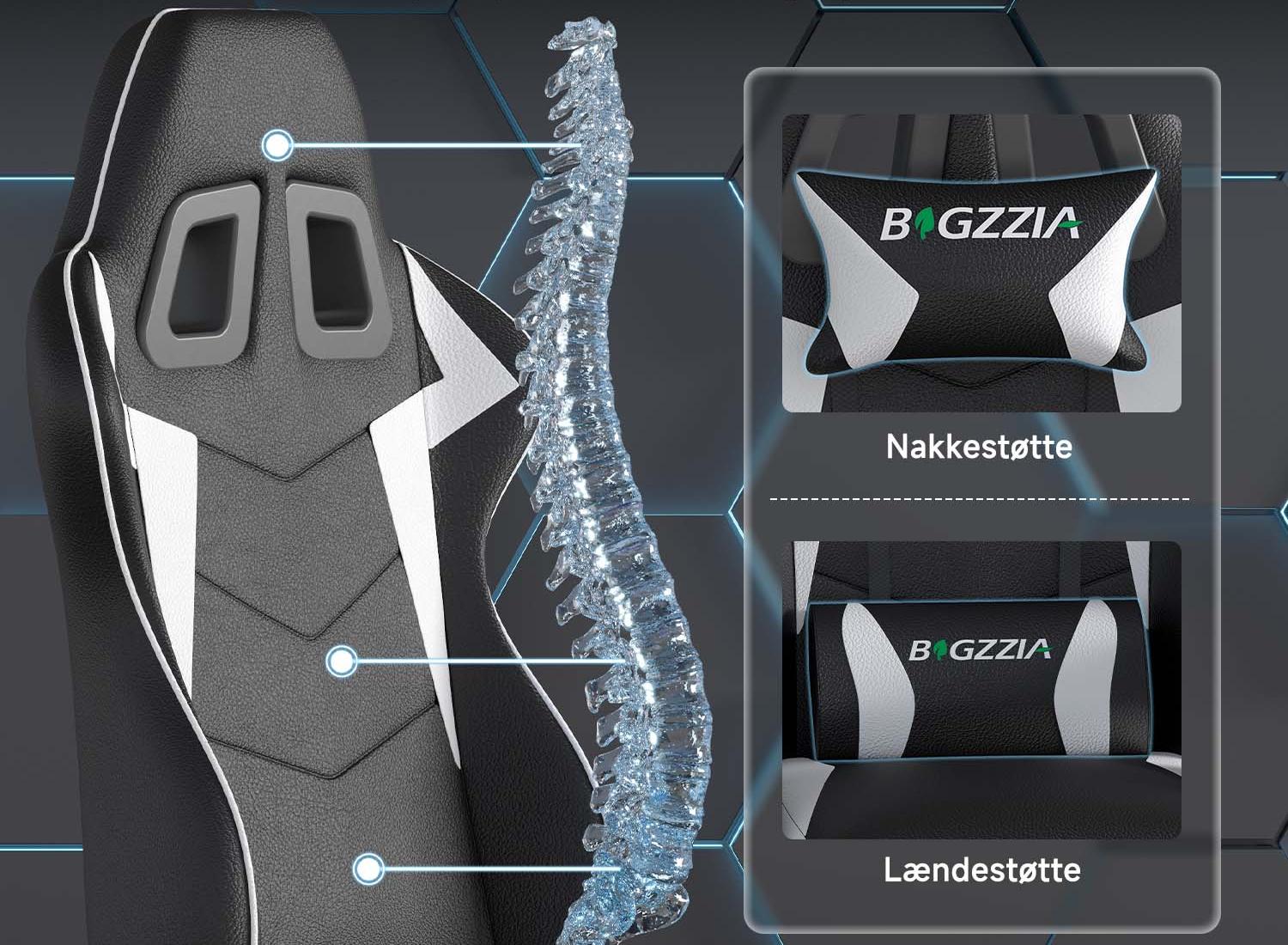 Gamingstolen er lavet af blødt og hudvenligt PU-læder, som er modstandsdygtigt over for ridser, pletter, afskalning og revner, og samtidig åndbart. Den er omhyggeligt designet til at støtte din ryg, nakke og arme, så du kan nyde en behagelig siddeoplevelse.